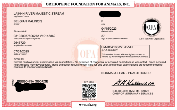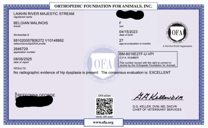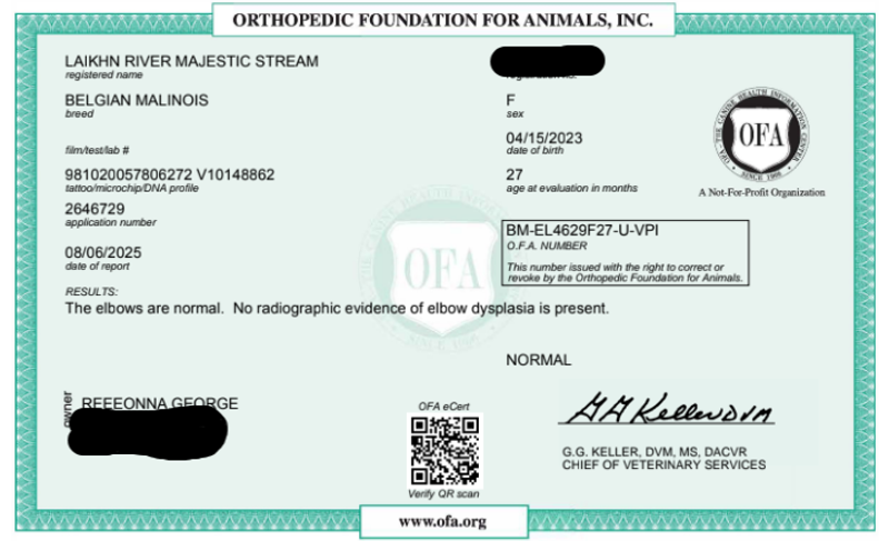 Laikhn is an incredibly sweet girl, herding instinct- her favorite thing to do is herding her jolly ball, strong bite. She is protective of her home and our boys. This girl has an abundance of confidence. Laikhn has been DNA and health tested.